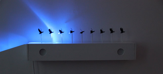 Die glühenden, flimmernden und blinkenden biologischen Botschaften der Leuchtkäfer sprechen uns an, wecken Erinnerungen und Assoziationen und versetzen uns in eine magische Parallelwelt – kein Wunder, dass das kalte Licht der fireflies auch KünstlerInnen nicht kalt lässt. Die Ausstellung Fireflies! versammelt Werke von Kunstschaffenden, die sich seit Jahren oder Jahrzehnten mit Glühwürmchen und anderen Leuchtkäfern beschäftigen: schlichte und zauberhafte Bilder und Objekte an der Schnittstelle zwischen Licht und Dunkel, Natürlichkeit und Künstlichkeit, Biologie und Technik. Die vier in der Ausstellung vertretenen KünstlerInnen sehen ihre Arbeit als Forschung in einem aktuellen Umfeld, wo die dunkle Seite der Nacht ausgeblendet zu werden droht und die Biosphäre Gefahr läuft, durch menschliche Eingriffe Vielfalt und Funktionstüchtigkeit zu verlieren.