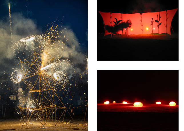 Funken sprühen, Bengallichter glühen, Sonnen drehen, Irrlichter schweben, Schatten spielen im Schein des Feuers mit der Leinwand und tanzen durch den nächtlichen Park. In der letzten Festivalwoche wird der «Sommernachtstraum» durch eine Inszenierung von Studierenden der Zürcher Hochschule der Künste (ZHdK) abgerundet – wie beim ersten Glühwürmchen-Festival im Sommer 2005. Ein Spiel mit Feuer und Bewegung im Rieterpark unter der Leitung von Serge Lunin, ZHdK, Bruno Fischer (Pyrotechnik), Christiane Loch und Silvano Mozzini, Carambole Tanz & Theater (Inszenierung), sowie Jens Biedermann (Choreographie).