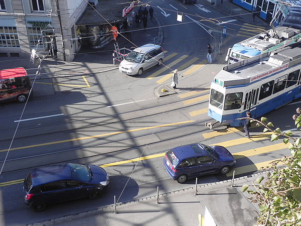 Zur Stosszeit am Central: Der Verkehr strömt von allen Seiten, die Ströme blockieren sich gegenseitig und rollen wieder an, die Trams quietschen und die Menschen hetzen. Wenige Schritte über dem Central wartet eine Oase der Ruhe: der Garten des «aki», des Katholischen Akademikerhauses, ein verträumter kleiner Park mit verschlungenen Kieswegen und schattigen Sitzplätzen, hervorgegangen aus einer um 1850 entstandenen Anlage. Nebenan rattert die Polybahn hinauf und hinunter. Auf der Polyterrasse, wiederum nur ein paar Schritte weiter, öffnet sich der Blick in die Weite und der ganze Klang der Stadt wird hörbar, zusammengesetzt aus identifizierbaren Einzelgeräuschen und einem tosenden Grundrauschen.Ein kurzer Spaziergang mit offenen Ohren zwischen Lärm und Ruhe, begleitet vom Klangspezialisten Andres Bosshard, dem Autor des 2009 veröffentlichten Buches «Stadt hören. Klangspaziergänge durch Zürich», und dem Jesuitenpater Franz-Xaver Hiestand, dem Leiter des aki, der uns durch Haus und Garten führt und in der hauseigenen Kapelle mitten in der City eine Stelle zeigt, wo eine fast unglaubliche Stille herrscht.